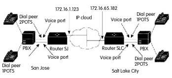 連接。每個(gè)辦公室有一個(gè)PBX內(nèi)部電話網(wǎng)絡(luò),通過一個(gè)E&M接口連接到語音網(wǎng)絡(luò)。 鹽湖城和San Jose 辦公室都使用E&M