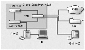 Catalyst 4224結(jié)合了24端口快速以太網(wǎng)交換機(jī)的功能,即利用Catalyst 2600/3600分支機(jī)構(gòu)路由器、8端口模擬語音網(wǎng)關(guān)和縮小的AVVID呼叫管理器等為IP電話提供線路供電能力。所有的部件都集中在一個(gè)2U的機(jī)柜內(nèi),它還具有硬件加速的VPN和防火墻的性能。