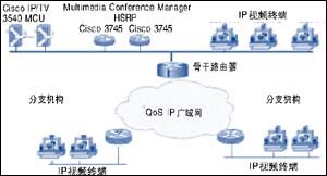 在企業(yè)總部部署Cisco 公司模塊化的IP/VC 3540 MCU(多點制單元,Multipoint Control Unit),每個IP/VC