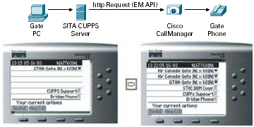 Manager發(fā)出一個HTTP請求,獲取該航空公司的設(shè)備檔案。如果該業(yè)務(wù)代表位于某個登機口柜臺,CUPPS服務(wù)器將請求更改多部電話的配置。這將通過多個HTTP請求實現(xiàn)。應(yīng)當(dāng)指出的是,允許人工登陸柜臺電話的Extension