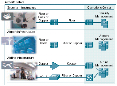 。。由于預(yù)算不斷波動(dòng)、物理空間有限,且已對(duì)網(wǎng)絡(luò)基礎(chǔ)設(shè)施進(jìn)行了投資,當(dāng)前的機(jī)場(chǎng)和航空公司無(wú)法承受巨大的商業(yè)風(fēng)險(xiǎn)。而由分立IT網(wǎng)絡(luò)元素組成的基礎(chǔ)設(shè)施極大地限制了改進(jìn)的能力,帶來(lái)了功能化信息孤井、重復(fù)應(yīng)用、專用航空公司系統(tǒng)、不同的網(wǎng)絡(luò)協(xié)議,以及昂貴、復(fù)雜的網(wǎng)絡(luò)設(shè)計(jì)和部署。
