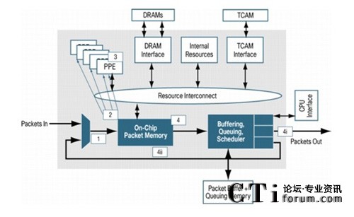 傳統(tǒng)的網(wǎng)絡(luò)處理器為了優(yōu)化報文分類和處理速度并節(jié)省內(nèi)存訪問帶寬,通常僅訪問數(shù)據(jù)包頭以獲得較高的轉(zhuǎn)發(fā)吞吐量,當(dāng)這類處理器進(jìn)行深度數(shù)據(jù)包檢測(DPI),防火墻,網(wǎng)絡(luò)地址轉(zhuǎn)換(NAT),Netflow等復(fù)雜操作時,將會對性能造成不良影響。