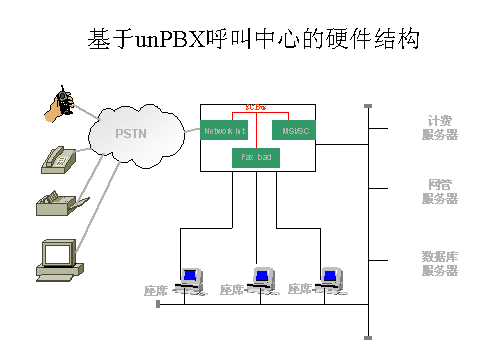 所謂unPBX就是利用CTI構(gòu)件來完成電話系統(tǒng)的功能。這樣的電話系統(tǒng)具有傳統(tǒng)的PBX的所有功能。目前,這種交換系統(tǒng)逐漸在市場上流行開來。它較傳統(tǒng)和PBX有一些優(yōu)越性。