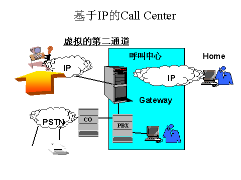 服務(wù)供應(yīng)商建立VoIP網(wǎng)關(guān),從PSTN通過T1、E1或ISDN主速率接口(PRI)線路接受呼叫,并且通過TCP/IP連接將其路由設(shè)在另一個位置。網(wǎng)關(guān)可連接至計算機(jī)電話(CT)服務(wù)器上,該服務(wù)器可播放提示,錄制信息,傳輸呼叫,提供按鍵式菜單選擇,文語轉(zhuǎn)換(TTS),創(chuàng)建會議呼叫,收發(fā)傳真,發(fā)送數(shù)字和字母數(shù)字尋呼。在這里,電話中繼線直接來自PSTN還是PBX并無太大差別。另外,擁有多個駐留點的服務(wù)供應(yīng)商充分利用所屬的廣域網(wǎng)將語音阻塞轉(zhuǎn)至呼叫中心,從而避免長話費用。