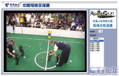 2008年的這個夏天,蘇州閃耀著科技的光彩。第十二屆RoboCup2008機(jī)器人世界杯賽于7月14日在蘇州國際博覽中心如期舉行。大賽集科技、體育、人文于一體,是一場科技的盛宴、體育的盛會、人文的盛事。來自全球的約30個國家的300多支隊伍共1400多名參賽者和學(xué)者參加了本次比賽和期間的學(xué)術(shù)研討會,這成為08夏日全球矚目的焦點(diǎn)之一。圖1網(wǎng)絡(luò)現(xiàn)場直播界面