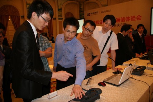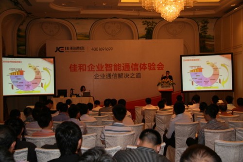 CTI論壇(ctiforum)4月25日消息(記者 潘婷婷): 廣東佳和通信技術(shù)有限公司主辦的首場(chǎng)企業(yè)智能通信體驗(yàn)會(huì),于2011年4月13日在廣州富力麗思卡爾頓酒店隆重召開(kāi),并取得圓滿成功。此次體驗(yàn)會(huì)來(lái)自佳和通信的負(fù)責(zé)人和業(yè)內(nèi)專家就佳和企業(yè)智能通信平臺(tái)的應(yīng)用以及協(xié)同辦公的發(fā)展趨勢(shì)發(fā)表了主題演講,為所有到場(chǎng)的100多位來(lái)賓做了詳實(shí)的介紹。同時(shí)展示了佳和“!毕盗械7個(gè)應(yīng)用解決方案,并對(duì)拳頭產(chǎn)品——智能IP話機(jī)T600、移動(dòng)分機(jī)M600、個(gè)人助理軟件IPA PRO等進(jìn)行了現(xiàn)場(chǎng)演示和互動(dòng),其目的在于使現(xiàn)場(chǎng)嘉賓充分感受企業(yè)智能通信的價(jià)值和魅力,同時(shí)親身體驗(yàn)到如何在在加速辦公自動(dòng)化的同時(shí)提高企業(yè)效率、節(jié)約成本。CTI論壇報(bào)道