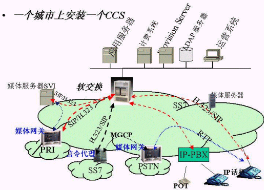 為了完整解決城域網上承載話音業(yè)務,實現IP phone 到PSTN、IP phone 到 IP phone、PSTN 到IP phone的呼叫。新太公司的集成方案中包括以下設備:軟交換核心設備、媒體網關、信令網關、IP PBX、IP 話機、PC IP Softphone、媒體服務器。