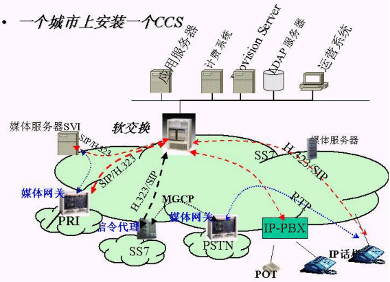 下一代電信網(wǎng)絡(luò)(NGN)體系結(jié)構(gòu)為新興的電信運(yùn)營(yíng)商真正介入端到端的話音業(yè)務(wù)提供了契機(jī)。目前,銅纜資源為中國(guó)電信所壟斷,許多新興的電信運(yùn)營(yíng)和寬帶運(yùn)營(yíng)商正為如何真正介入語(yǔ)音電話而煩惱。但是隨著技術(shù)的進(jìn)步,語(yǔ)音編解碼的出現(xiàn),在IP網(wǎng)絡(luò)上傳送語(yǔ)音的技術(shù)已經(jīng)較為成熟。同時(shí)在下一代電信網(wǎng)絡(luò)體系結(jié)構(gòu)中解決了phone to IP-phone,IP-phone to phone 的地址映射問(wèn)題,為新電信運(yùn)營(yíng)商介入語(yǔ)音業(yè)務(wù)提供了技術(shù)手段。同時(shí),各個(gè)地方寬帶城域網(wǎng)、接入網(wǎng)的建設(shè),特別是寬帶接入網(wǎng)建設(shè)為基本為都提供了用戶(hù)提供10M速率的接入。而且寬帶接入網(wǎng)建設(shè)上的競(jìng)爭(zhēng)日益激烈,中國(guó)電信、長(zhǎng)城寬帶、聯(lián)通、網(wǎng)通都有一定的寬帶接入用戶(hù)的份額,為新興的電信運(yùn)營(yíng)商介入語(yǔ)音業(yè)務(wù)提供了物理手段。隨著信息產(chǎn)業(yè)部對(duì)各電信運(yùn)營(yíng)商互聯(lián)互通要求的加強(qiáng),為新興的電信運(yùn)營(yíng)商介入語(yǔ)音業(yè)務(wù)提供了較好的可運(yùn)營(yíng)環(huán)境。雖然目前在IP網(wǎng)絡(luò)上沒(méi)有提供Qos保證的機(jī)制,但IP骨干和接入網(wǎng)為用戶(hù)提供充足的帶寬同樣能做到較好的話音質(zhì)量。IP電話的出現(xiàn)也為有線網(wǎng)路介入話音業(yè)務(wù)提供了技術(shù)手段。同時(shí)目前在建成的寬帶接入網(wǎng)上應(yīng)用的只有上網(wǎng)業(yè)務(wù),如何增加寬帶接入的應(yīng)用,提高寬帶接入網(wǎng)的收入,是寬帶運(yùn)營(yíng)商最關(guān)心的事情。我們能夠提供一整套的解決方案利用寬帶接入(五類(lèi)線)為新興的寬帶運(yùn)營(yíng)提供市話、長(zhǎng)話業(yè)務(wù)。