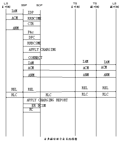 、 SSP按照SCP返回的被叫號碼及路由信息,與被叫側(cè)TS、LS局進(jìn)行IAM、ACM和ANM(應(yīng)答消息)等ISUP信令交互;