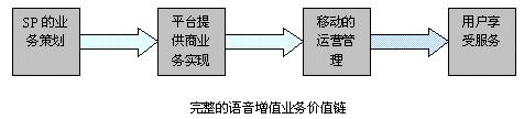 在語音雜志業(yè)務(wù)運(yùn)營中,SP、語音平臺提供商、移動公司、移動用戶組成了一條完整的價(jià)值鏈,如下圖所示: