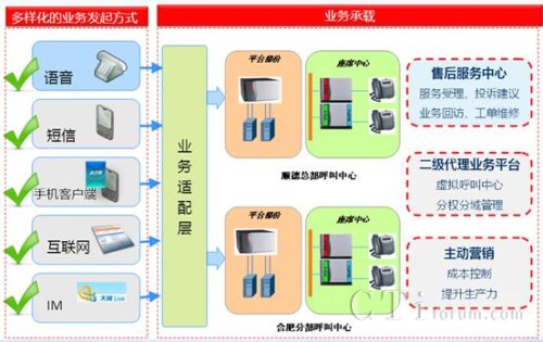 為了達(dá)到異地容災(zāi)的目的,新太科技為美的集團(tuán)在順德與和合肥分別設(shè)立了兩個(gè)呼叫中心,兩個(gè)呼叫中心通過(guò)廣域網(wǎng)絡(luò)連接起來(lái)。兩個(gè)呼叫中心都可以獨(dú)立運(yùn)作,同時(shí)又可以進(jìn)行統(tǒng)一管理。