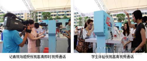 這次在廣州大學(xué)城開展的發(fā)布會,吸引了很多在校大學(xué)生的參加,下圖是記者和學(xué)生現(xiàn)場體驗通過悅視高清視頻通話玩即時猜拳游戲,傳輸?shù)乃挟嬅娣浅G逦鲿,悅視產(chǎn)品的優(yōu)質(zhì)體驗讓人享受無線高質(zhì)量流媒體服務(wù)的同時深刻感受到TD-LTE高帶寬、低時延的優(yōu)勢。