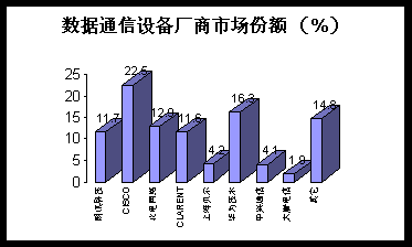 (2)市場特點(diǎn):由于非外資設(shè)備廠商的崛起,數(shù)據(jù)通信產(chǎn)品價(jià)格持續(xù)下降,中低端產(chǎn)品競爭尤為激烈。華為、中興等公司在高端接入服務(wù)器、路由器等領(lǐng)域已取得突破,市場份額穩(wěn)步攀升,在高端接入服務(wù)器領(lǐng)域,非外資品牌已占到60%以上的份額。IP網(wǎng)絡(luò)設(shè)備繼續(xù)被CISCO等少數(shù)公司壟斷、非外資廠商試圖有所作為但收效甚微。運(yùn)營商高漲的投資熱情與設(shè)備廠商的大力推動(dòng),是數(shù)據(jù)產(chǎn)品市場迅速擴(kuò)張的拉動(dòng)力量,網(wǎng)絡(luò)帶寬的不足以及運(yùn)營商Qos的局限依然是該市場飛躍發(fā)展的瓶頸因素。