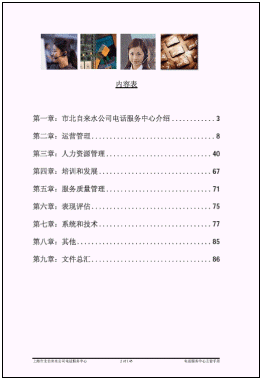 b) 現(xiàn)代客戶服務(wù)中心的管理框架已經(jīng)基本形成。我們?yōu)槭斜弊詠硭蛻舴⻊?wù)中心編輯了一套呼叫中心運(yùn)營管理手冊(cè),其中分為經(jīng)理版和客戶服務(wù)代表版,其中包含了呼叫中心的規(guī)章制度,運(yùn)作流程,人力資源管理等內(nèi)容。