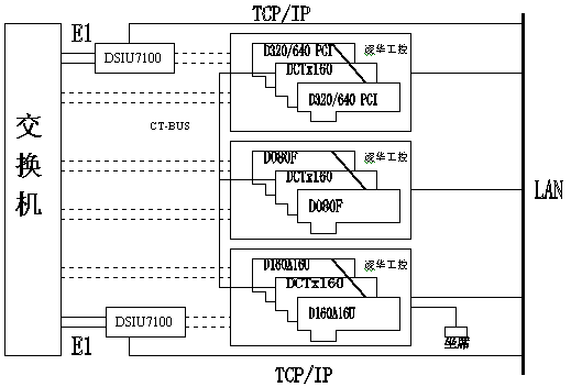 電信1000號(hào)客戶服務(wù)中心,集成了計(jì)算機(jī)網(wǎng)絡(luò)技術(shù)和計(jì)算機(jī)語音集成技術(shù)(CTI)。系統(tǒng)結(jié)構(gòu)可分為三部分:CTI硬件平臺(tái)、LAN網(wǎng)絡(luò)平臺(tái)、客戶服務(wù)軟件系統(tǒng)。東進(jìn)公司推出了基于板卡的CTI硬件方案,以七號(hào)信令網(wǎng)關(guān)進(jìn)行協(xié)議轉(zhuǎn)換。此硬件平臺(tái)具有以下優(yōu)點(diǎn):