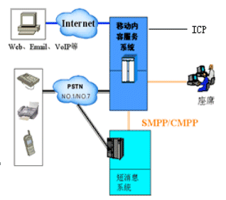 CTI技術(shù)是計算機電信集成技術(shù),它的信令網(wǎng)關(guān)化、媒體處理網(wǎng)關(guān)化、標準接口、可編程等特點非常適合移動內(nèi)容服務和聲訊服務的需求。因此,在移動內(nèi)容服務規(guī)范中,主要技術(shù)依據(jù)就是CTI技術(shù)和SMS技術(shù)。