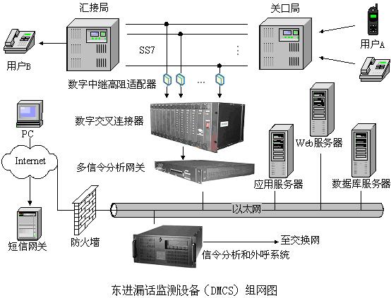 東進漏話監(jiān)測設(shè)備(DMCS)采用大容量、高穩(wěn)定的電信級的基礎(chǔ)平臺,其中數(shù)字交叉連接器和多信令分析網(wǎng)關(guān),都采用標(biāo)準(zhǔn)的19英寸機架設(shè)計,便于客戶的安裝和使用,設(shè)備單平臺最大可同時接入64個E1,平臺利用東進公司核心的信令采集技術(shù)、語音媒體處理和交換技術(shù),提供全程中國七號信令,支持ISUP信令方式,具有較穩(wěn)定的信令可靠性和接續(xù)速度。平臺采用與短信網(wǎng)關(guān)連接的解決方案,支持與SMC和SMG兩種連接方式。
