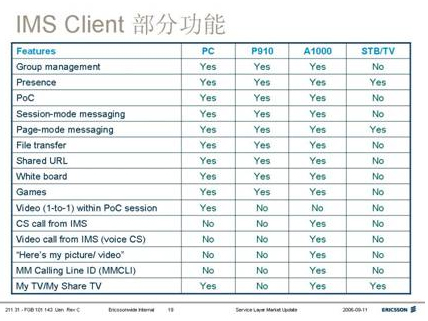 多媒體應(yīng)用是所有電信運(yùn)營(yíng)商和最終用戶共同關(guān)注的領(lǐng)域,而基于先進(jìn)電信技術(shù)的新一代電信業(yè)務(wù)網(wǎng)絡(luò)將成為電信運(yùn)營(yíng)商在今后融合的市場(chǎng)進(jìn)行差異化競(jìng)爭(zhēng)的關(guān)鍵。 圖4:愛立信IMS客戶平臺(tái)的部分功能