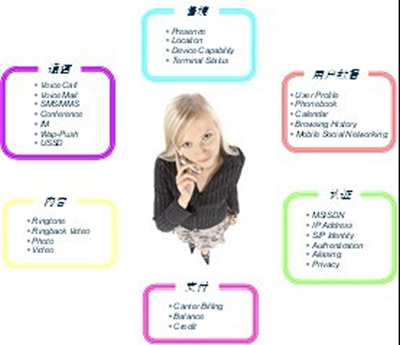 三是開放電信能力,運營商手里有很多得天獨厚的資源,如SMS、MMS、語音等可靠的通信服務(wù),用戶數(shù)據(jù),情境,認(rèn)證等。這些是運營商獨有的資源,在此基礎(chǔ)上開發(fā)出來的應(yīng)用也是獨一無二的。