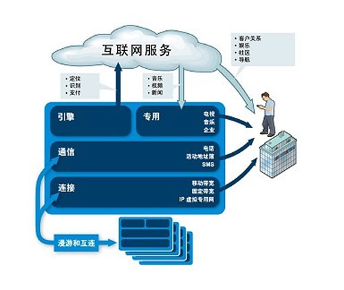 并且運營商的業(yè)務(wù)擴展也不會一帆風(fēng)順,隨著互聯(lián)網(wǎng)、媒體、電信的融合,產(chǎn)業(yè)鏈的其他環(huán)節(jié)也在全力擴張。越來越多的IT廠商強勢介入服務(wù)運營行列,消費電子廠商以及內(nèi)容提供商充分利用在用戶群中的親和力大做文章。運營商要面對的挑戰(zhàn)很多。人們還會看到,人氣旺盛的互聯(lián)網(wǎng)應(yīng)用會越來越多的受到運營商以及終端廠商的青睞,爭相將其遷移到電信系統(tǒng)中。