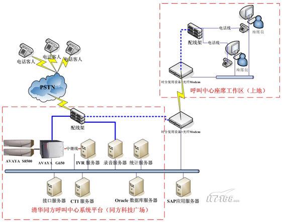 讓呼叫中心與CRM聯(lián)動(dòng)清華同方呼叫中心系統(tǒng)拓?fù)鋱D