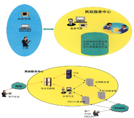 民政社區(qū)服務(wù)中心利用CTI技術(shù)、網(wǎng)絡(luò)技術(shù)、數(shù)據(jù)庫技術(shù)、WEB技術(shù)及多種接入方式:電話、呼叫器、傳真、互聯(lián)網(wǎng)、移動(dòng)互聯(lián)網(wǎng)、手機(jī)等,為廣大居民提供便捷、優(yōu)質(zhì)的社區(qū)服務(wù)。