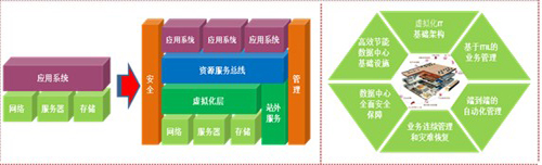 企業(yè)的發(fā)展和業(yè)務(wù)的創(chuàng)新越來越離不開IT技術(shù)的應(yīng)用,傳統(tǒng)的以項(xiàng)目為建設(shè)單元的數(shù)據(jù)中心造成了煙囪式的建設(shè)、分布式的開發(fā)、分離式的運(yùn)維,使眾多企業(yè)的 IT 形成了復(fù)雜的、孤立的架構(gòu),信息孤島隨處可見,無(wú)法提供靈活、安全和易于擴(kuò)展的應(yīng)用環(huán)境,從多方面影響了業(yè)務(wù)運(yùn)營(yíng)的效果。隨著商業(yè)模式的不斷創(chuàng)新、IT技術(shù)的不斷發(fā)展,業(yè)務(wù)與IT日益密切,傳統(tǒng)的數(shù)據(jù)中心建設(shè)已經(jīng)無(wú)法滿足未來業(yè)務(wù)發(fā)展的需要,難于部署新的應(yīng)用與服務(wù),設(shè)備利用率低下,業(yè)務(wù)彈性較難,無(wú)法保證系統(tǒng)和應(yīng)用的可用性和可靠性,同時(shí)不斷上升的能源成本和能源需求、機(jī)房空間需求阻礙了業(yè)務(wù)的發(fā)展。