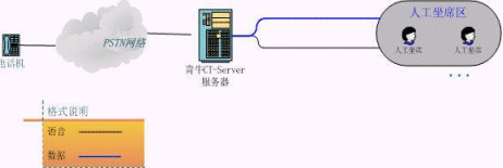青牛CT-Server服務(wù)器由語(yǔ)音板卡加上青牛CT-Server軟件包組成,其特點(diǎn)是安裝容易、價(jià)格低。這種類(lèi)型的呼叫中心已經(jīng)具有了語(yǔ)音導(dǎo)航和人工服務(wù)的功能,可以處理小壓力的客戶(hù)呼叫了。