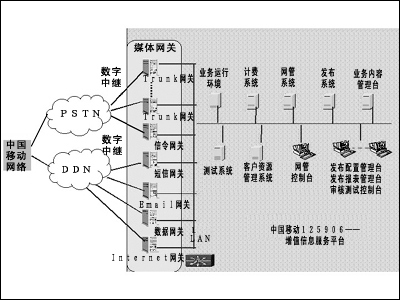 中國移動1259061增值信息服務平臺采用青牛軟件公司提供的網(wǎng)絡中間件產(chǎn)品。這個平臺采用移動通信網(wǎng)絡負責處理全國的呼叫接入,將來自全國的電話呼叫通過長途網(wǎng)從北京局匯入到該增值信息服務平臺上。呼叫分布到多臺服務器上,青牛網(wǎng)絡中間件實現(xiàn)話路的處理、語音的播報、數(shù)據(jù)的統(tǒng)計等等。