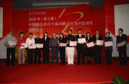 經(jīng)過長(zhǎng)達(dá)6個(gè)月的方案征集、遴選和最后打分綜合評(píng)選,"2005(第三屆)中國通信業(yè)百個(gè)成功解決方案評(píng)選"活動(dòng)結(jié)果終于在2005年度最后一周揭曉,成為獻(xiàn)給我國通信行業(yè)發(fā)展的第一份新年禮物。