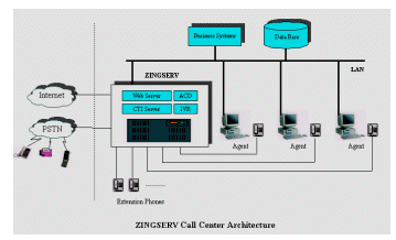 ZINGSERVò采用可靠性、安全性極高的嵌入式實(shí)時(shí)LINUX操作系統(tǒng)進(jìn)行開(kāi)發(fā)。系統(tǒng)軟件采用客戶/服務(wù)器結(jié)構(gòu),服務(wù)器集ACD(技能組)、IVR、CTI