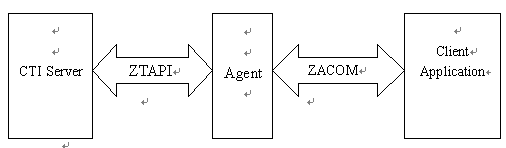 通常呼叫中心的座席軟件都需要用戶定制,以便在標(biāo)準(zhǔn)的座席功能上加入業(yè)務(wù)處理功能,并且要求能與業(yè)務(wù)系統(tǒng)交換數(shù)據(jù)。用戶可以利用ZTAPI接口直接定制自己的座席軟件,也可以使用Agent軟件自帶的COM開發(fā)接口來實(shí)現(xiàn)同樣的功能。后者是一種更便捷的機(jī)制,因為可以直接使用ZingServ®標(biāo)準(zhǔn)的座席軟件--Agent的座席功能,用戶可以把更多的精力投入到業(yè)務(wù)處理功能,使用ZACOM要求使用時需運(yùn)行Agent軟件。ZACOM開發(fā)結(jié)構(gòu)示意圖如下: