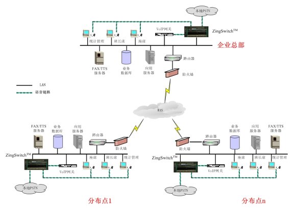 ZingSwitch® CVNET呼叫中心平臺同時支持在各個分布點同時部署ZingSwitch®交換機,采用統(tǒng)一的交換平臺搭建呼叫中心網(wǎng)絡(luò),各分布點同時擁有因地制宜、按需部署的靈活性。