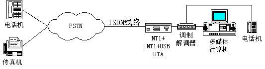 采用ISDN數(shù)字線路時,實(shí)現(xiàn)PSTN電話語音方式的連接圖如下: