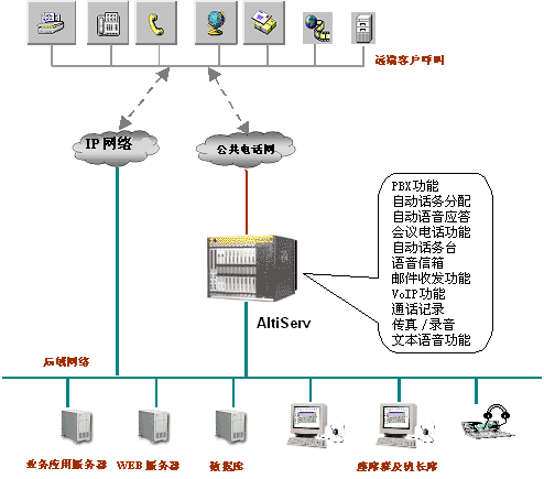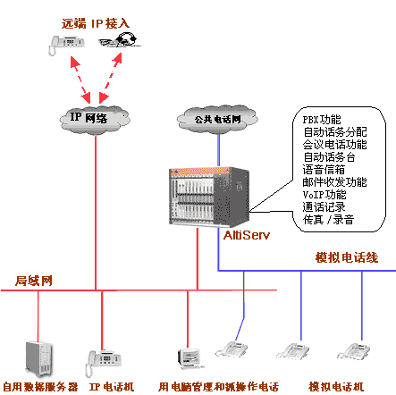 - 電話系統(tǒng)與傳統(tǒng)的交換機(jī)連為一個統(tǒng)一的通訊整體