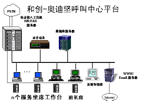 系統專線連接Internet網絡,客戶可以通過Internet網絡與座席人員進行電話交流。