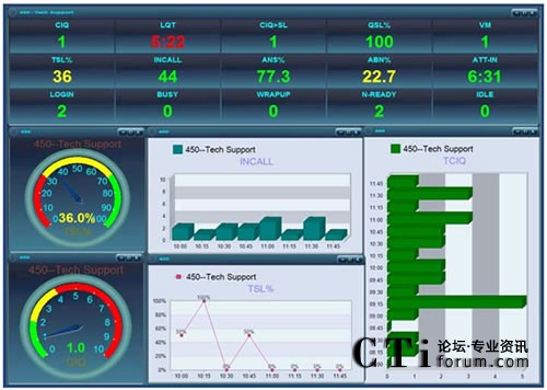 事實(shí)上,MaxInSight大屏顯示軟件,是奧迪堅(jiān)MAXCS產(chǎn)品系列中一個(gè)工作組狀態(tài)顯示程序。它可以通過(guò)掛壁式的LCD大屏或PC電腦顯示屏來(lái)實(shí)時(shí)顯示工作組的工作狀態(tài)和運(yùn)行數(shù)據(jù),以供呼叫中心的管理員和座席參考。他可以顯示單個(gè)或多個(gè)工作組的實(shí)時(shí)隊(duì)列狀態(tài)、實(shí)時(shí)工作組資源狀態(tài)、每日工作績(jī)效以及一段時(shí)間內(nèi)的數(shù)據(jù)趨勢(shì)。同時(shí)MaxInSight軟件還配備了很多個(gè)性化的功能,將坐席工作變得更加豐富多彩。