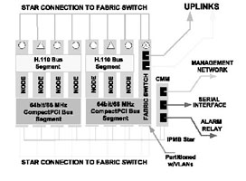 如果我們采用基于CompactPCI標準的刀片服務器系統(tǒng)來實現(xiàn),系統(tǒng)可能就是完全另外一種樣子(如圖1),這樣的實現(xiàn),首先系統(tǒng)體積小,只要一個刀片服務器機箱;第二,系統(tǒng)基于標準的體系架構(gòu),開發(fā)和維護容易,成本低廉;第三,系統(tǒng)非常好地集成了語音通信和IP通信,易于部署增值電信業(yè)務;第四,系統(tǒng)具有較好的可擴展性,因為背板提供了豐富的帶寬資源,同時單位空間內(nèi)豐富的插槽,可以安裝更多的服務器刀片,提供了充足的計算資源;第五,系統(tǒng)還可以利用各種高可靠性和高可管理性的特點。
