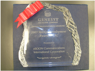 在2006年8月結(jié)束的澳洲墨爾本G-Force會(huì)議上,Genesys將 “2005年亞太地區(qū)最佳市場(chǎng)拓展”(2005 Market Development Award,APAC)獎(jiǎng)項(xiàng)授予億迅,億迅總裁李冰影女士出席頒獎(jiǎng)儀式并代表公司領(lǐng)取該獎(jiǎng)。擔(dān)任頒獎(jiǎng)人的Genesys全球資深副總裁 James Brooks (卜澤民)先生對(duì)億迅近一年來(lái)的業(yè)務(wù)拓展情況給予高度評(píng)價(jià),并對(duì)兩者的合作關(guān)系大加贊賞,稱此番獲獎(jiǎng)是名至實(shí)歸的。他說(shuō):“隨著亞太地區(qū)經(jīng)濟(jì)的迅猛發(fā)展,客戶互動(dòng)管理出現(xiàn)新一輪的增長(zhǎng)需求。作為長(zhǎng)期以來(lái)值得信賴的合作伙伴,億迅展現(xiàn)出強(qiáng)大的業(yè)務(wù)技術(shù)能力,在掌握客戶動(dòng)態(tài)需求的基礎(chǔ)上,以豐富的專業(yè)經(jīng)驗(yàn)為許多企業(yè)提供先進(jìn)解決方案,解決了他們技術(shù)和管理層面的困擾,可以毫不夸張地說(shuō)億迅為Genesys亞太地區(qū)的發(fā)展做出了杰出貢獻(xiàn)!