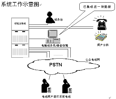 該系統(tǒng)可作為程控交換機(jī)銷售商的配套模塊配給新用戶,也可用于電力、院校、企業(yè)集團(tuán)、政府機(jī)關(guān)等已擁有交換機(jī)的單位加配電腦話務(wù)員和語音信箱及114查號(hào)臺(tái)功能。