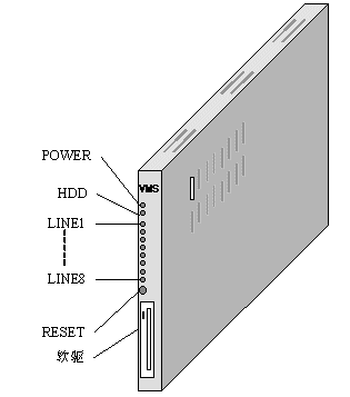 一塊嵌入式語音信箱板(集成了一臺(tái)電腦、語音卡和用戶板三者)。下面為其外形示意圖:
