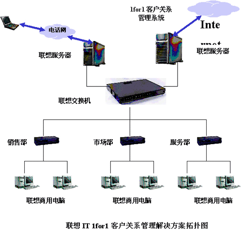 。。其實(shí)早在1998年,公司就開(kāi)始了企業(yè)信息化管理的嘗試。公司建設(shè)了自己的局域網(wǎng),并開(kāi)發(fā)出了專(zhuān)門(mén)的軟件系統(tǒng)。所有的客戶(hù)信息都要求錄入到這套系統(tǒng)中,銷(xiāo)售人員的工作記錄和銷(xiāo)售業(yè)績(jī)也要在系統(tǒng)中進(jìn)行登記。只是這套系統(tǒng)的基礎(chǔ)數(shù)據(jù)還是以Word、Excel文檔的形式分別存在,且中間的數(shù)據(jù)缺乏統(tǒng)一接口,無(wú)法動(dòng)態(tài)地反映公司整體的運(yùn)營(yíng)情況,很快就無(wú)法適應(yīng)公司業(yè)務(wù)發(fā)展的需要。在這種情況下,公司決定引進(jìn)規(guī)范的客戶(hù)關(guān)系管理系統(tǒng)。經(jīng)過(guò)多方比較之后,公司選擇了聯(lián)想的IT 1for1客戶(hù)關(guān)系管理解決方案。
