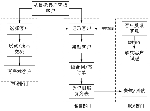 公司從很早就認(rèn)識(shí)到經(jīng)營(yíng)中存在的這些問(wèn)題,一直在尋找解決的方法和途徑。我們逐漸認(rèn)識(shí)到,公司經(jīng)營(yíng)亟待解決的問(wèn)題就是如何高效地處理客戶(hù)信息、有效地進(jìn)行客戶(hù)關(guān)系的管理,這是影響到公司能否獲得更大發(fā)展的關(guān)鍵。因?yàn)樵诠緞倓偲鸩綍r(shí),業(yè)務(wù)人員面對(duì)的是很少的客戶(hù)群,他們對(duì)每個(gè)客戶(hù)的具體情況非常熟悉,能夠根據(jù)每個(gè)客戶(hù)的不同需求特點(diǎn)提供相應(yīng)的產(chǎn)品和服務(wù)。而公司的管理人員面對(duì)的也是很少的業(yè)務(wù)人員,他們可以清楚地掌握每個(gè)業(yè)務(wù)人員的工作情況,并有針對(duì)性的加以監(jiān)督管理。公司的業(yè)務(wù)部門(mén)設(shè)置相對(duì)簡(jiǎn)單,彼此的溝通和配合也比較容易進(jìn)行。這時(shí)候幾乎不存在客戶(hù)的管理問(wèn)題。但當(dāng)公司的業(yè)務(wù)成倍增長(zhǎng)后,業(yè)務(wù)人員和客戶(hù)的數(shù)量都空前膨脹,這時(shí)候簡(jiǎn)單的管理手段就承擔(dān)不了如此沉重的管理任務(wù),公司的經(jīng)營(yíng)就會(huì)出現(xiàn)混亂。突出的表現(xiàn)就是客戶(hù)、業(yè)務(wù)人員失控,公司的業(yè)務(wù)拓展陷入無(wú)序狀態(tài),失去繼續(xù)增長(zhǎng)的動(dòng)力。在這種情況下,要使公司的經(jīng)營(yíng)走出泥潭,必須要引入的就是先進(jìn)的客戶(hù)關(guān)系管理的觀念和手段。