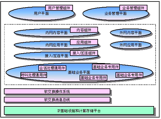 從結構上看,業(yè)務驅動的軟交換平臺是一個復雜的多域多層組件平臺。一個電信業(yè)務的實現(xiàn)是對平臺上的組件的組裝過程。業(yè)務驅動的軟交換平臺上的組件分為用戶平面、基礎業(yè)務平面、接入/互連/移動控制平面、應用平面、內容平面和業(yè)務管理平面。用戶平面的組件負責維護用戶的注冊信息、位置信息、狀態(tài)信息、業(yè)務信息和業(yè)務使用信息;A業(yè)務平面的組件分為三大類型:電路基礎業(yè)務、包交換基礎業(yè)務和多媒體交換基礎業(yè)務。每個基礎業(yè)務分成傳輸層、承載層、媒體層、呼叫處理層和業(yè)務層,其中的控制包括了對各層功能的控制協(xié)議和層間交互的控制協(xié)議。接入/互連/移動控制平面中包含了對各種接入網(wǎng)絡的控制、對互聯(lián)網(wǎng)絡的控制和對移動性的控制協(xié)議,也分成傳輸層、承載層、媒體層、呼叫處理層和業(yè)務層的控制組件。應用平面的組件分為三種類型,基于傳統(tǒng)智能網(wǎng)(IN,