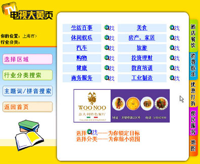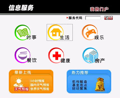 在上海IPTV提供的業(yè)務(wù)中,信息服務(wù)也是眾多用戶喜聞樂(lè)見的一項(xiàng)業(yè)務(wù),內(nèi)容覆蓋廣泛。它提供了時(shí)事、生活、娛樂(lè)、餐飲、健康、房產(chǎn)等信息,其中“時(shí)事”一欄呈現(xiàn)了新浪上海熱線實(shí)時(shí)傳遞的全球最新新聞資訊,讓老百姓“手握遙控器,便知天下事”,“健康”一欄更是一網(wǎng)打盡上海地區(qū)醫(yī)療機(jī)構(gòu)的信息資訊,特色專科搜索為用戶提供便捷的醫(yī)療信息服務(wù),“房產(chǎn)”中上海地區(qū)各類二手房產(chǎn)訊息一應(yīng)俱全,價(jià)格、地段、房型等應(yīng)有盡有。