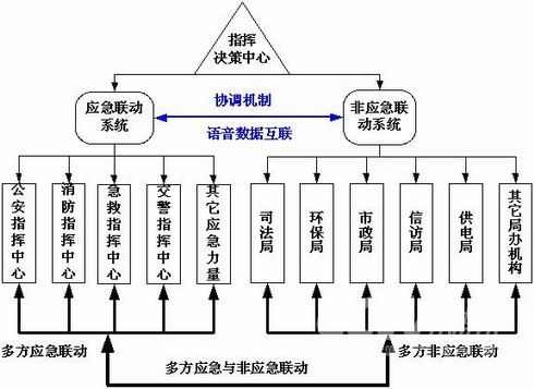 能夠?qū)崿F(xiàn)應急機構(gòu)與非應急部門之間的橫向聯(lián)動,即所謂“大聯(lián)動”。對于有些復雜的事件,僅由應急機構(gòu)無法處理,僅由非應急機構(gòu)也無法處理,需要應急機構(gòu)和非應急機構(gòu)的同時參與、相互協(xié)調(diào)才能處理!皯迸c非應急一體化聯(lián)動”機制就是針對這種情況的有效解決方案。