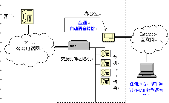 【音通】系統(tǒng)一經(jīng)安裝,生產(chǎn)力及工作效率便可大大提升。接線員不需再無時無刻守候在電話旁邊處理來電。即使在辦公時間過后,此系統(tǒng)仍能繼續(xù)自動運(yùn)作。方便的語音郵箱功能,隨時隨地收聽E-MAIL。