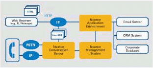 Nuance Application Environment (NAE)應(yīng)用環(huán)境包括繪圖式的開發(fā)工具,使得語音應(yīng)用的設(shè)計變得和應(yīng)用框架的設(shè)計一樣便利。該框架可以在普遍使用的WEB應(yīng)用服務(wù)器上運行,包括BEA WebLogic,IBM Websphere and Apache Tomcat,它結(jié)合JSP等技術(shù)能設(shè)計出強大的VoiceXML應(yīng)用。語音應(yīng)用通過一系列預(yù)先定義的接口,可以非常容易的集成到各種后端數(shù)據(jù)庫、應(yīng)用程序和原始系統(tǒng)。通過Nuance應(yīng)用環(huán)境還可以將語音技術(shù)集成到Computer Telephony Integration (CTI)服務(wù)器上。