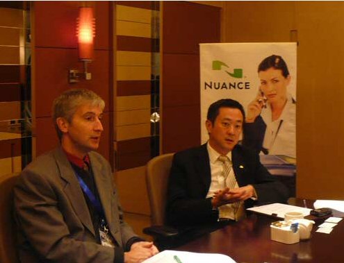 作為全球著名的語音, 智能文字輸入和圖像解決方案提供商,總部位于美國波士頓的Nuance通訊公司(Nuance Communications,Inc.),其關(guān)鍵業(yè)務(wù)包括為企業(yè),移動和客戶服務(wù)(手機,汽車和導(dǎo)航系統(tǒng)),口述醫(yī)療服務(wù),圖像處理提供解決方案,已在北京、上海、香港等地設(shè)立了辦事處,并在北京和上海設(shè)立了兩個針對不同技術(shù)的研發(fā)中心。圖:Nuance大中華區(qū)總經(jīng)理鄭裕慶(右)和Nuance 車載業(yè)務(wù)部總經(jīng)理Arnd Weil(左)在訪談中