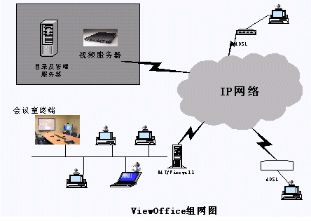 如下圖所示,ViewOffice系統(tǒng)組網(wǎng)有以下特點(diǎn):